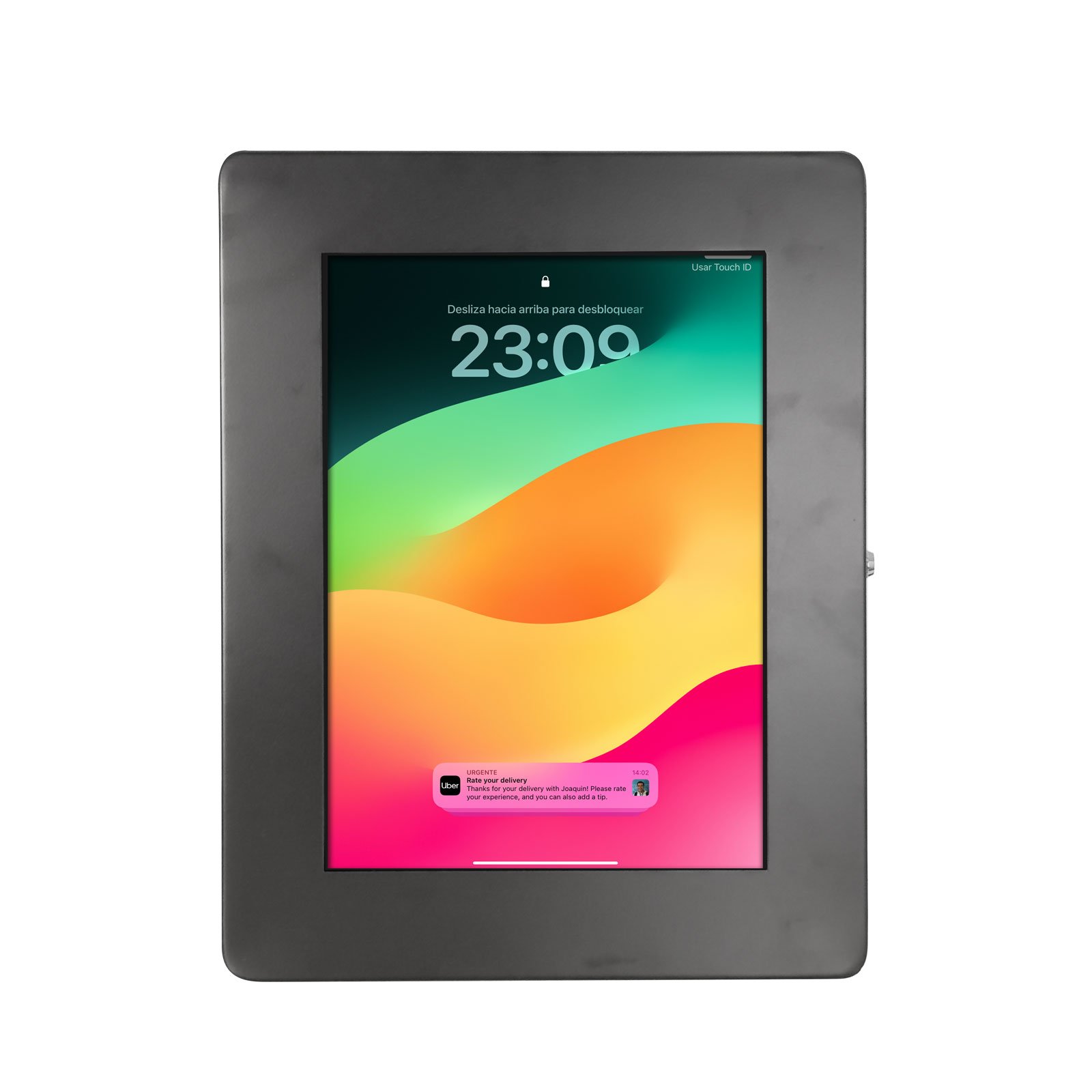 La ventana central del marco permite el uso táctil completo del iPad sin comprometer su funcionalidad. Además, la carcasa ha sido diseñada para cubrir completamente botones físicos, brindando una capa adicional de protección sin sacrificar la usabilidad.