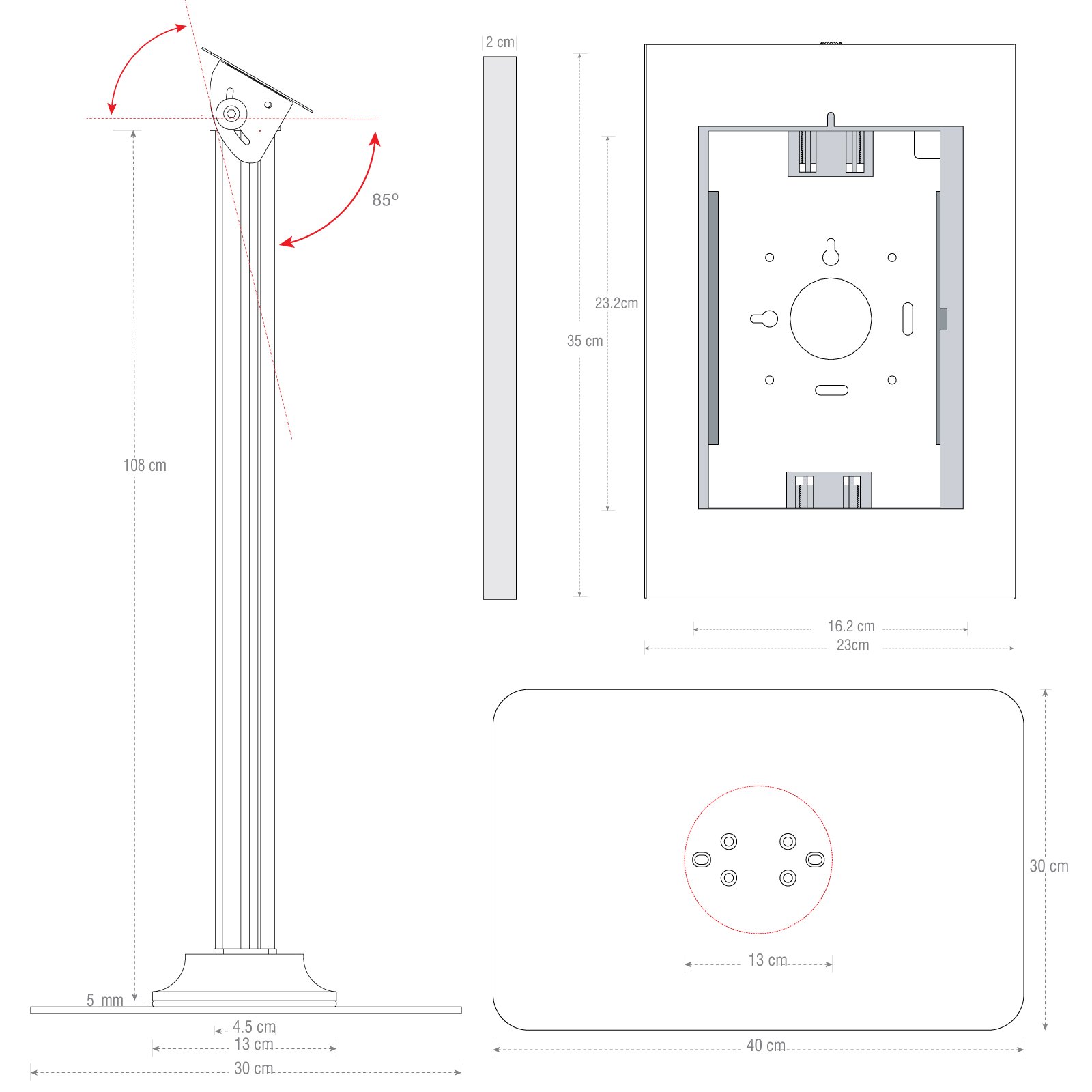 El pedestal SPNLK32BW03i10 es una solución de seguridad especializada para exhibición y protección de iPads de décima generación con pantalla de 10.9”, iPad 11a de 11″ iPad Air 11″ iPad Pro 11″. Diseñado para montaje en piso, este soporte de uso profesional ofrece una estructura firme y estética ideal para espacios de atención pública o puntos de consulta.