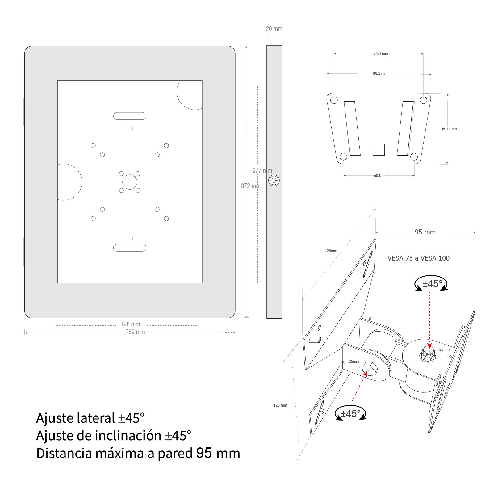 | Funciones | Ajuste de inclinación, Brazo articulado, Rotación der Pantalla |