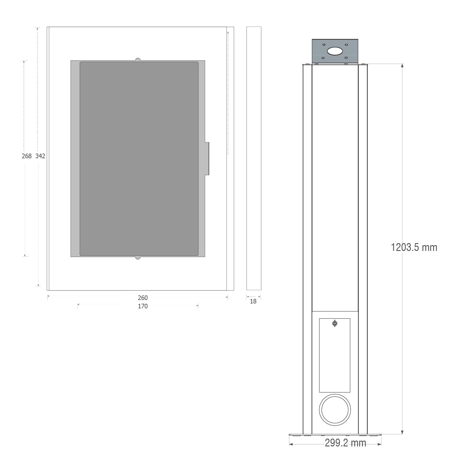El pedestal LK30 está fabricado en acero reforzado y diseñado para instalación fija en suelo mediante una base sólida y estable. Su poste metálico de 1000 mm de altura ofrece una estructura rígida con perfil interno para gestión de cableado oculto, garantizando una apariencia limpia y profesional. Incluye un compartimiento inferior con cerradura bancaria y puerta frontal, ideal para resguardar cargadores, adaptadores o dispositivos auxiliares. La inclinación de pantalla de 30° favorece una visualización cómoda para el usuario final, mientras que la base perforada de acero asegura una fijación firme en instalaciones permanentes.