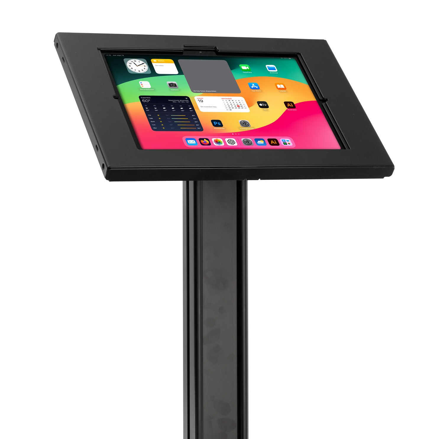 Sistema compatible con montaje VESA 75 y modelos de iPad listados en especificaciones